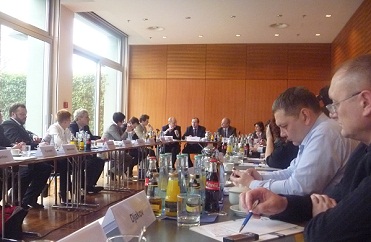 Завершающее мероприятие визита состоялось в Министерстве строительства Германии. Представители Союза рассказали об основных аспектах создания и функционирования саморегулируемых организаций. «В Германии действует система социальной экономики, в рамках которой все построенные предприятия являются независимыми. Участники этой системы объединяются в различные союзы, ассоциации, саморегулируемые организации. Цель создания таких объединений — представлять интересы своих членов в различных органах, чтобы строительное сообщество могло влиять на политику, систему выработки нормативно-правовой базы. Парламентом введена система аккредитации этих объединений. При Парламенте создаются списки объединений, которые прошли аккредитацию. В строительной отрасли Германии выделяют три значимых объединения: Центральный Союз немецкой индустрии, Союз строительного промысла, Строительный профсоюз. Объединения играют центральную роль в выработке тарифных соглашений» — отметил г-н Шалин.